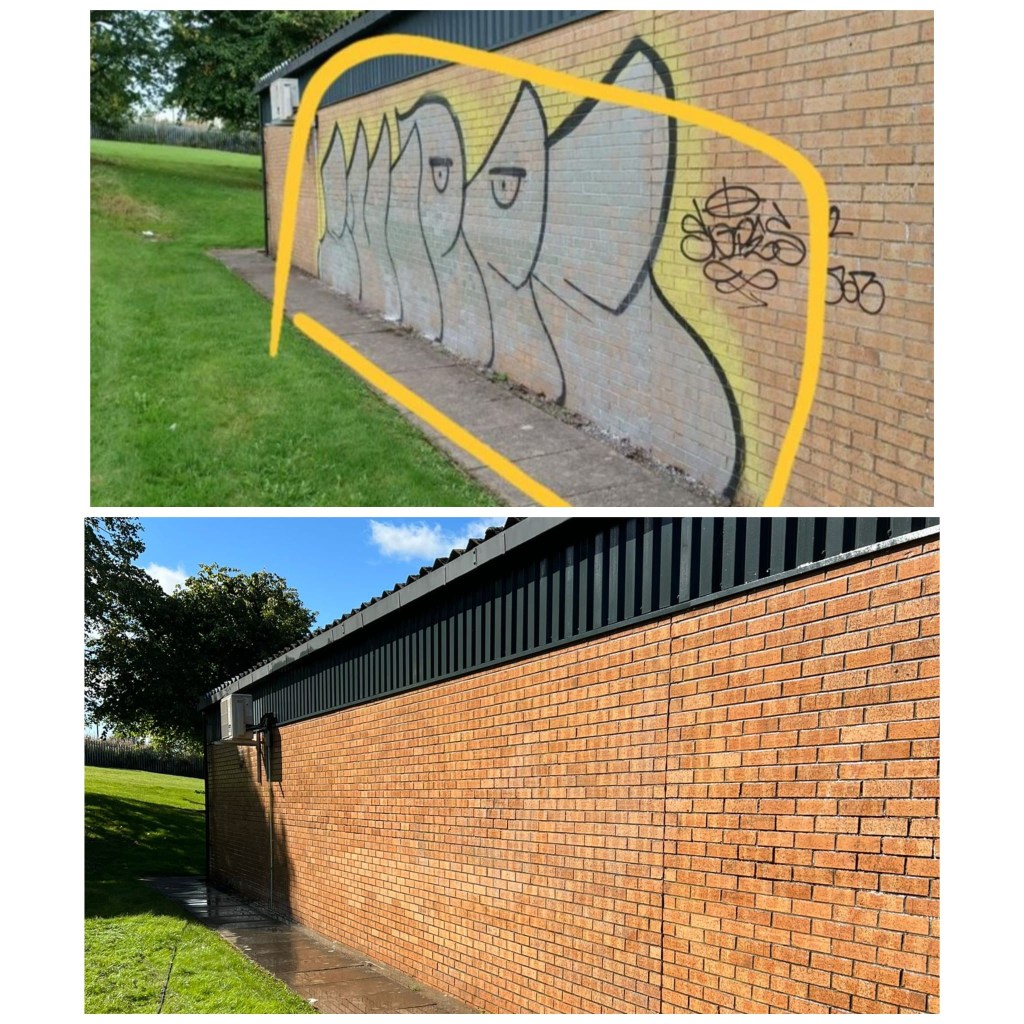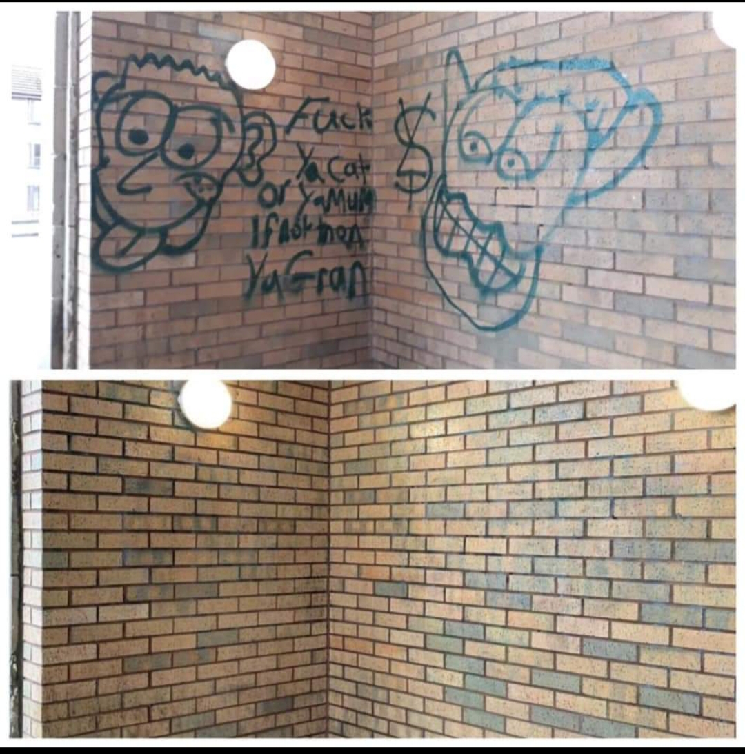 Commercial graffiti removal to any surfaces with brick, marble, metal, windows and shutters etc.